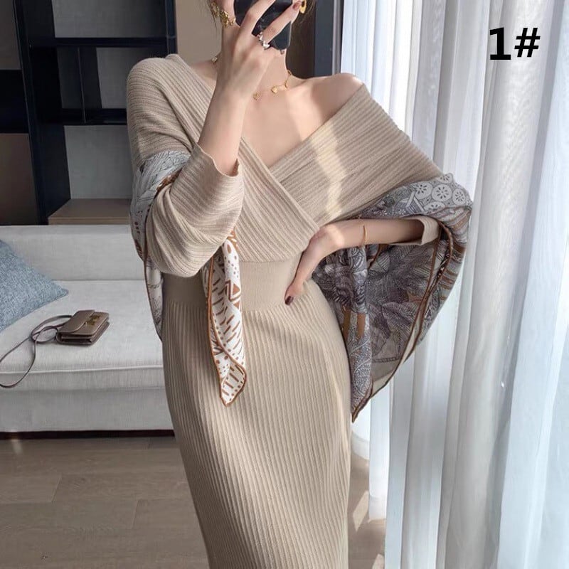 2024年秋冬新作 Vネックニットワンピ